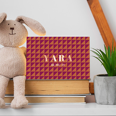 Laat je verrassen door dit hippe geboortekaartje met een patroon van schuine ruitjes in oranje en dieproze en de naam plus datum in roségoudfolie. Met onze gebruiksvriendelijke editor kun je het kaartje eenvoudig aanpassen naar jouw smaak. Bestel een drukproef om het eindresultaat te bekijken en laat je inspireren om een aankondiging te maken die perfect past bij jullie nieuwe gezinslid!
