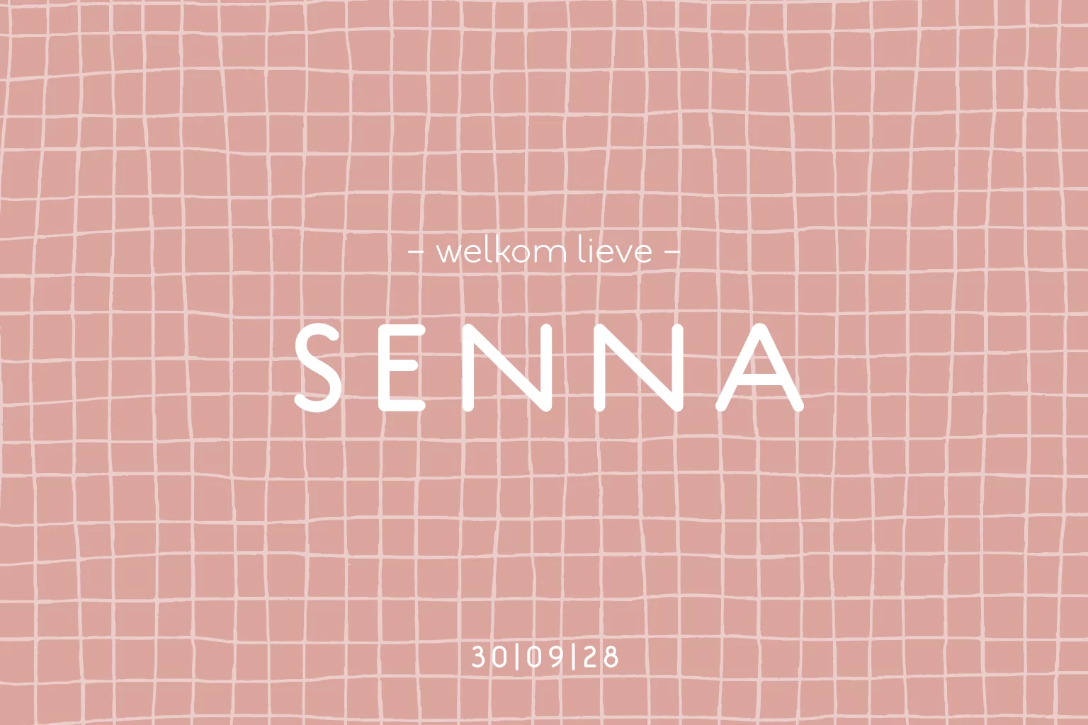 Meisjes geboortekaartje in roze met zachte ruitjes. Op de achterkant komen de ruitjes terug en kun je de geboortegegevens van je pasgeboren kleine kwijt. Pas de kaart naar wens aan in de editor.