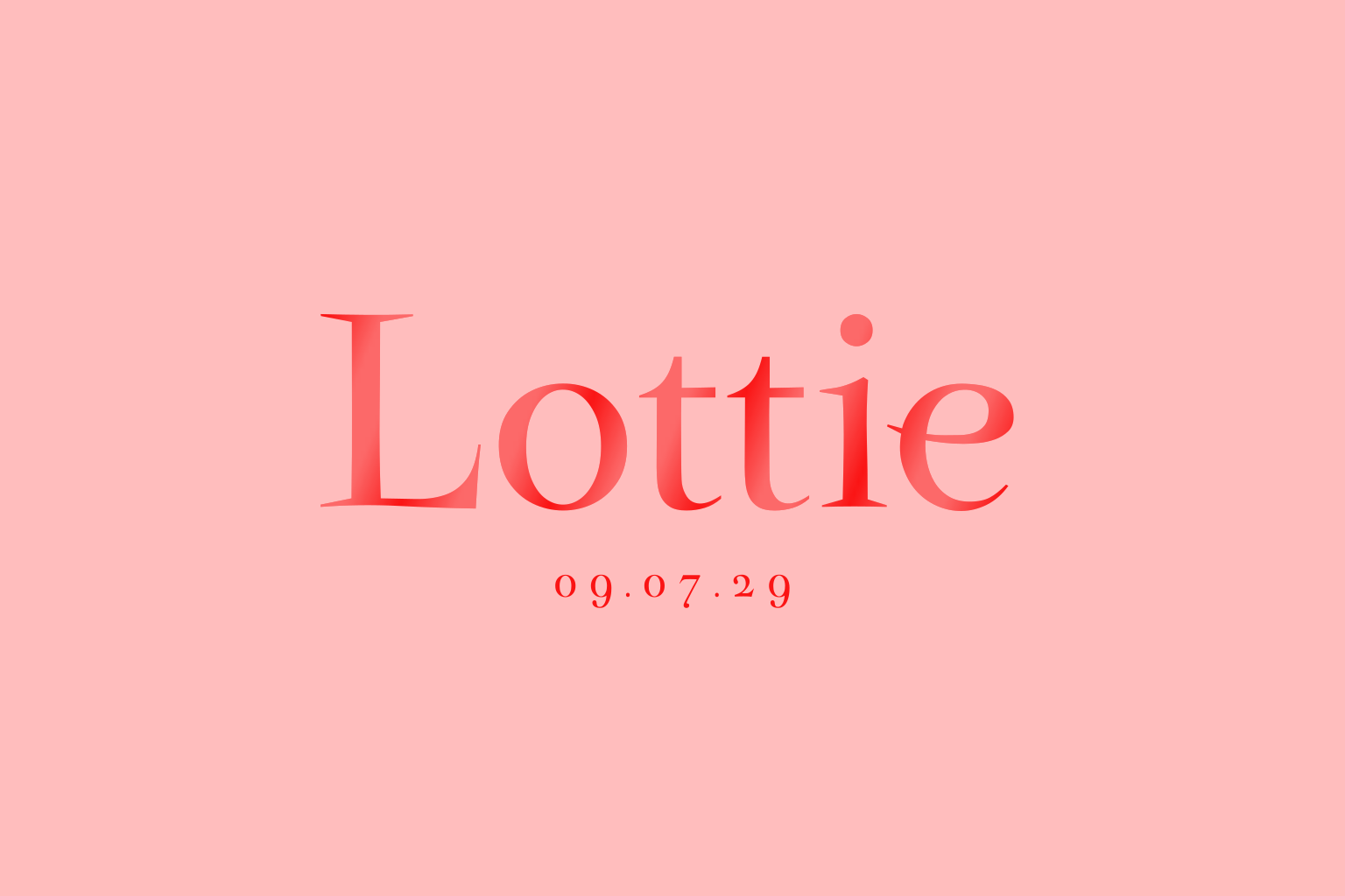 Een minimalistisch en trendy geboortekaartje met hoogglans naam in felrood en roze achtergrond. Een eenvoudig, maar vrolijk en opvallend kaartje om de komst van je dochtertje mee aan te kondigen! Pas zelf de kleuren aan in onze ontwerptool.