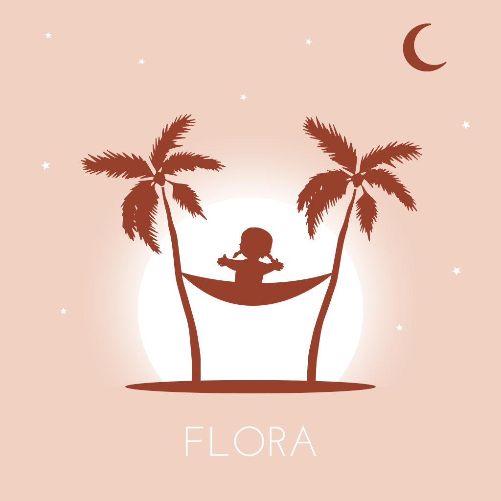 Wordt jullie dochtertje deze zomer geboren? Kies dan voor dit leuke silhouet geboortekaartje met hangmat die tussen twee palmbomen hangt met daarin een lief meisje. De zon gaat net onder en de maan staat al hoog.