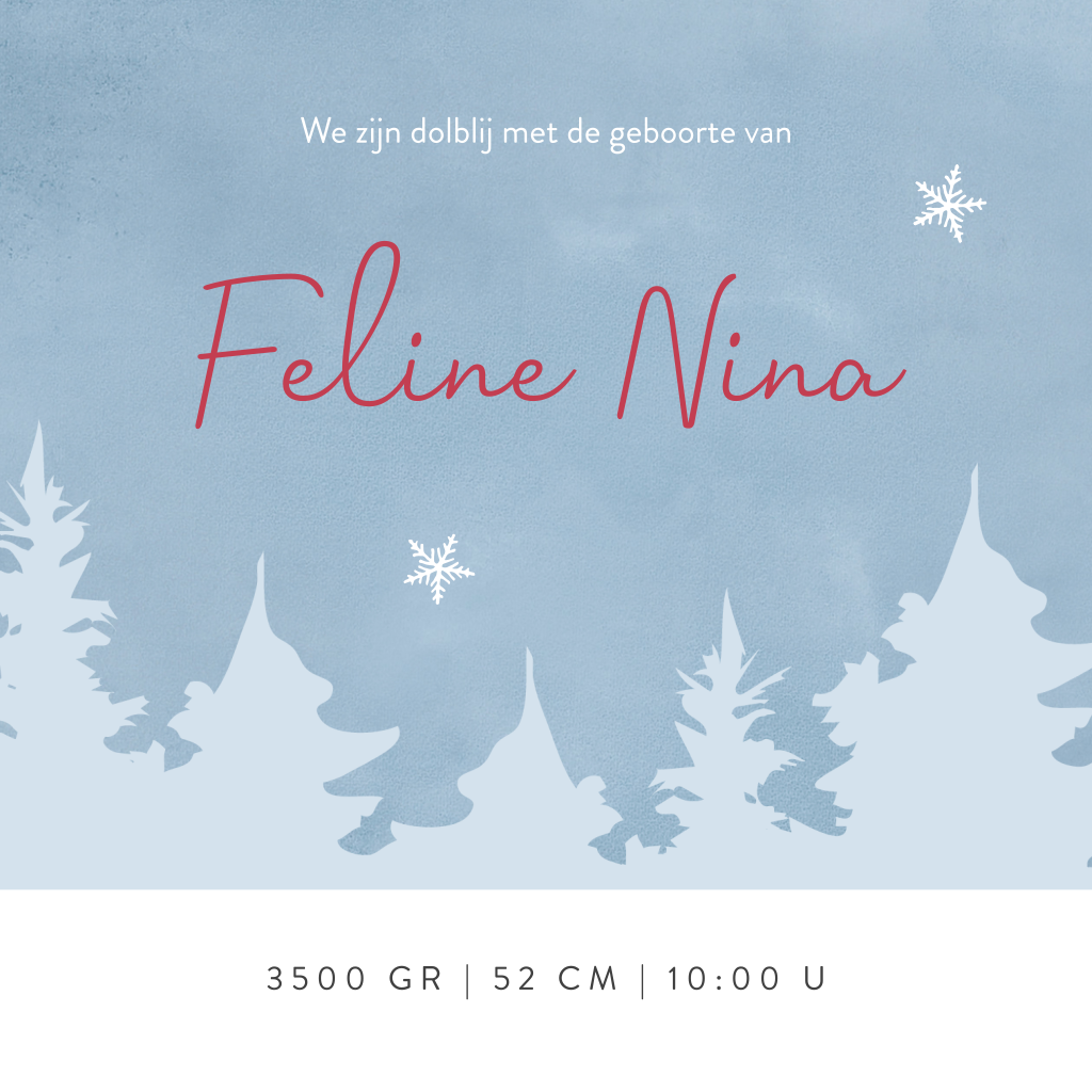 Wat leuk, er is een dochtertje op komst! Wordt ze in de winter geboren? Dan is dit lieve kaartje met winters landschap met schaatsende pinguin misschien iets voor jou. De sneeuwvlokjes dwarrelen door de lucht om het winterse thema compleet te maken. De pinguin heeft een roze sjaal om en schaatst ook aan de binnenzijde van dit kaartje langs. Erboven kun je een lieve quote plaatsen.