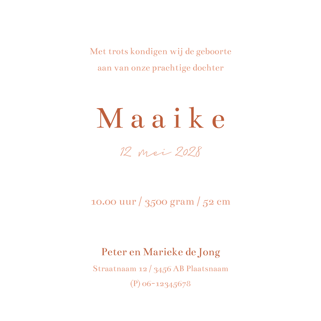 Op zoek naar een maritiem geboortekaartje voor je dochtertje? Ga voor dit lieve ontwerp met getekende schildpad, vuurtoren en streepjes. Aan de binnenkant van de kaart is ruimte voor een foto van je pasgeboren dochtertje. Liever geen fotokader? Stuur ons gerust een berichtje, we passen de kaart graag voor je aan. Zelf kun je verder allerlei dingen aanpassen met onze handige editor.