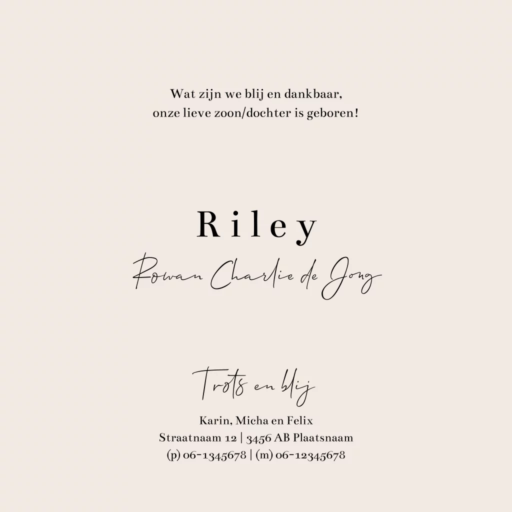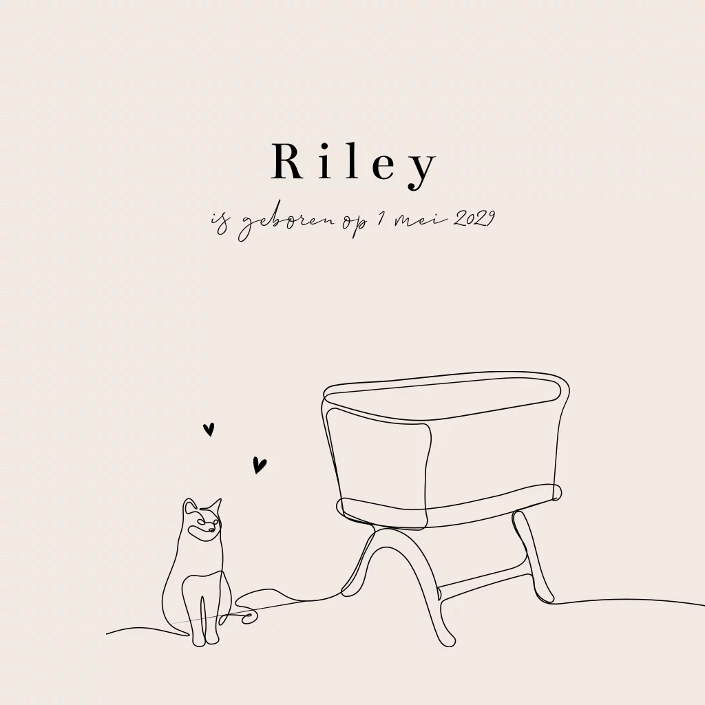 Heb je een lieve kat thuis en verwacht je gezinsuitbreiding? Kondig de komst van de kindje aan met dit trendy beige geboortekaartje met een zwarte lijntekening van een kat of poes en een wiegje. De kaart wordt verder versierd met kleine hartjes. Liever een andere achtergrondkleur? Pas dit kaartje zelf aan in onze handige editor.