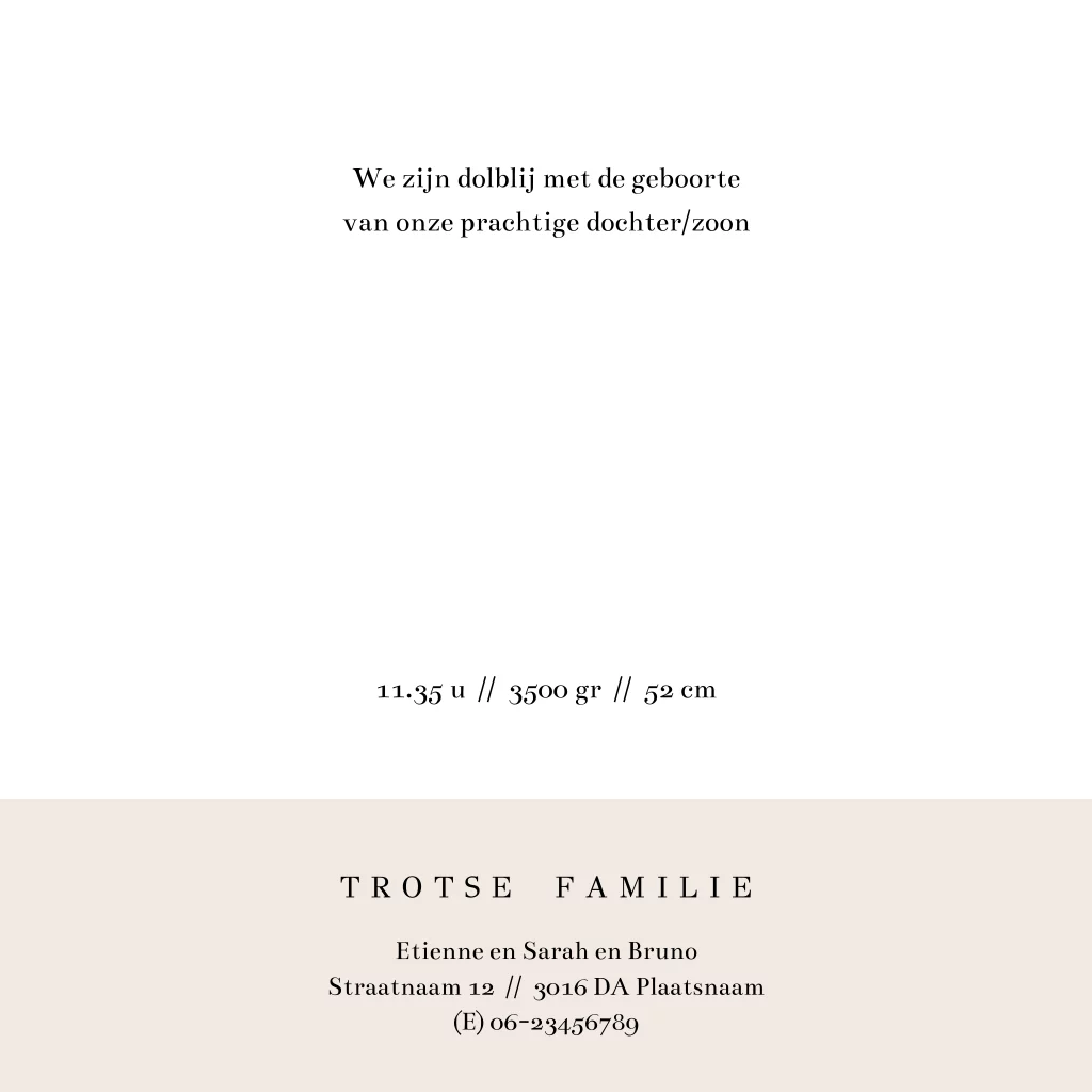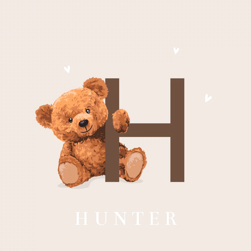 Op zoek naar een originele geboortekaart met een beertje? Dit prachtige neutrale kaartje met een lief beertje en de voorletter van de naam van je kindje is een perfecte keuze! De zachte beige kleuren en speelse details maken het een mooi geheel voor jullie kleine wonder. Personaliseer het kaartje met groot het initiaal en eronder de naam voluit. Het lijfje, hoofd en poot van de beer staan los dus deze kun je nog een beetje schuiven.