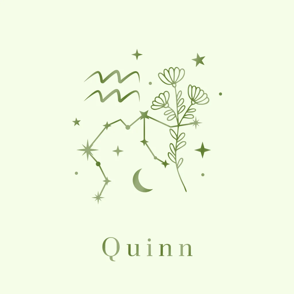 Frisgroen geboortekaartje met het sterrenbeeld Waterman en een bijpassende geboortebloem. Dankzij de glanzende details springt het ontwerp direct in het oog. In onze editor voeg je het sterrenbeeld eenvoudig toe via de map ‘Sterrenbeelden’.
