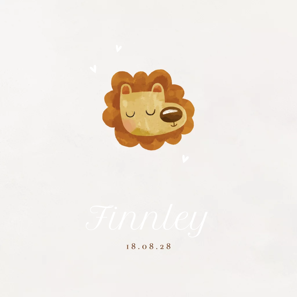 Lief geboortekaartje met goudfolie en leeuwtje