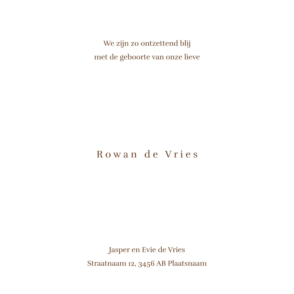 Vier de geboorte van uw kleintje met dit prachtige beige geboortekaartje, versierd met een lief leeuwtje. De naam van uw baby schittert in luxueuze goudfolie, omgeven door delicate hartjes, wat een speelse en liefdevolle touch toevoegt. Dit stijlvolle en unieke kaartje is perfect voor een onvergetelijke aankondiging. Pas deze kaart zelf aan in onze editor.
