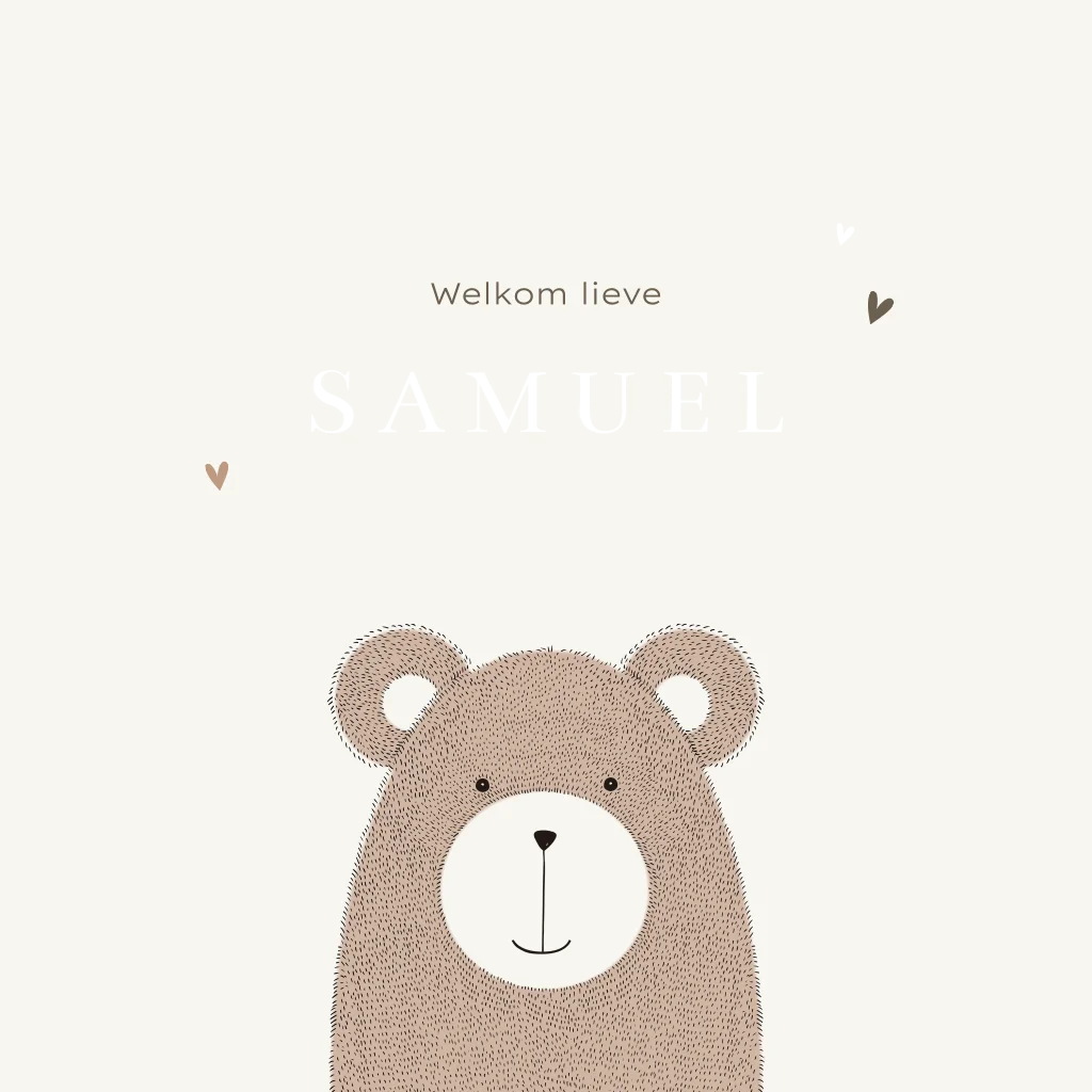 Neutraal vierkant geboortekaartje met beertje