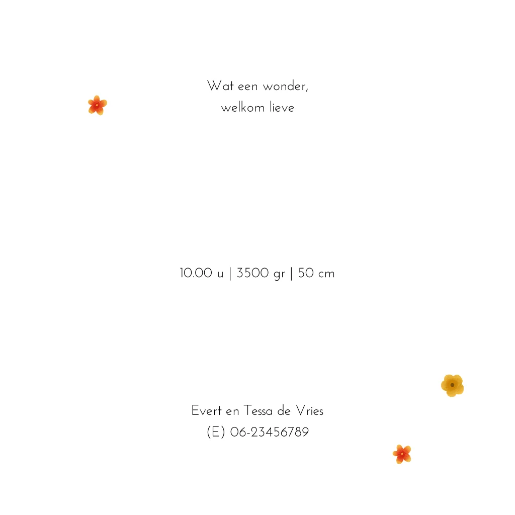Verwacht je een lente- of zomerkindje? Dan is dit lieve geboortekaartje met vrolijk bijtje en goudfolie perfect om zijn of haar komst aan te kondigen! Een lief getekend bijtje staat glimlachend voorop, samen met de naam van je kleine in glimmend goudfolie. Aan de binnenzijde komt de bij terug en de rest van de kaart is versierd met goudfolie hartjes en kleine bloemetjes. Pas dit kaartje zelf aan in onze editor en bestel een proefdruk.