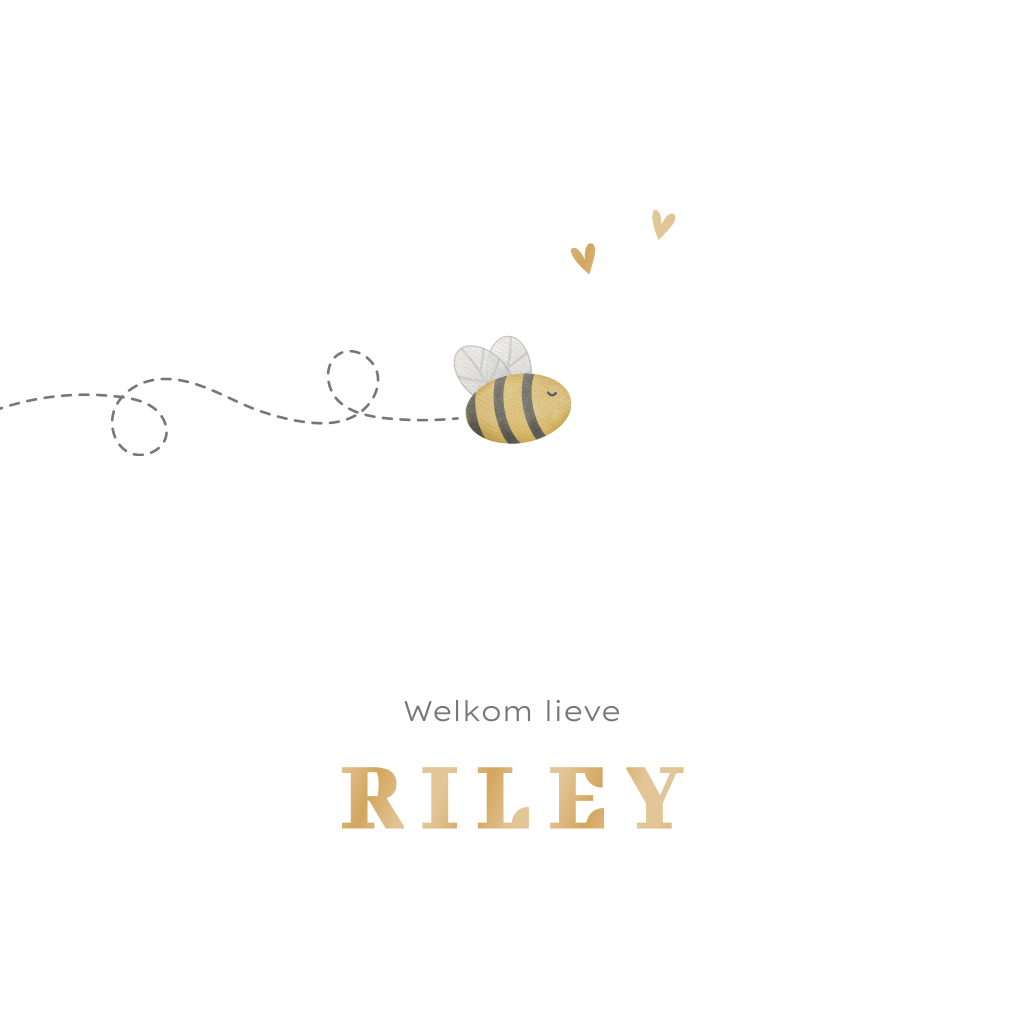 De lente is weer in aantocht en dan zien we weer overal bloemen en bijtjes. Wil jij een lief bijtje op het geboortekaartje van je kindje? Dit ontwerp met schattige bij en kleine hartjes kun je zelf nog verder bewerken in de editor. De naam staat in hoogglans net als de hartjes.