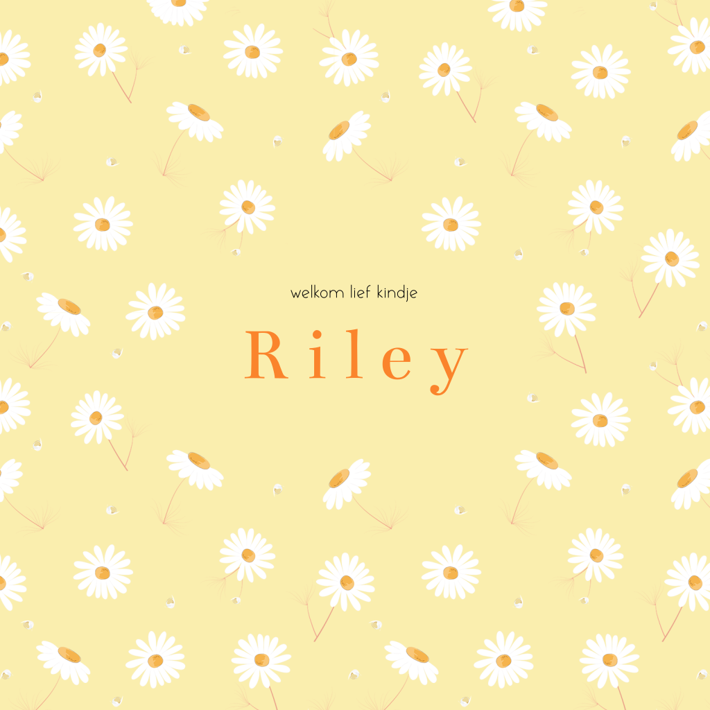 Zachtgeel lente geboortekaartje vol met witte madeliefjes, geschikt voor de geboorte van een jongen of meisje aan te kondigen. Dus verwacht je deze lente een kindje? Dan is een geboortekaartje met madeliefjes natuurlijk erg leuk.