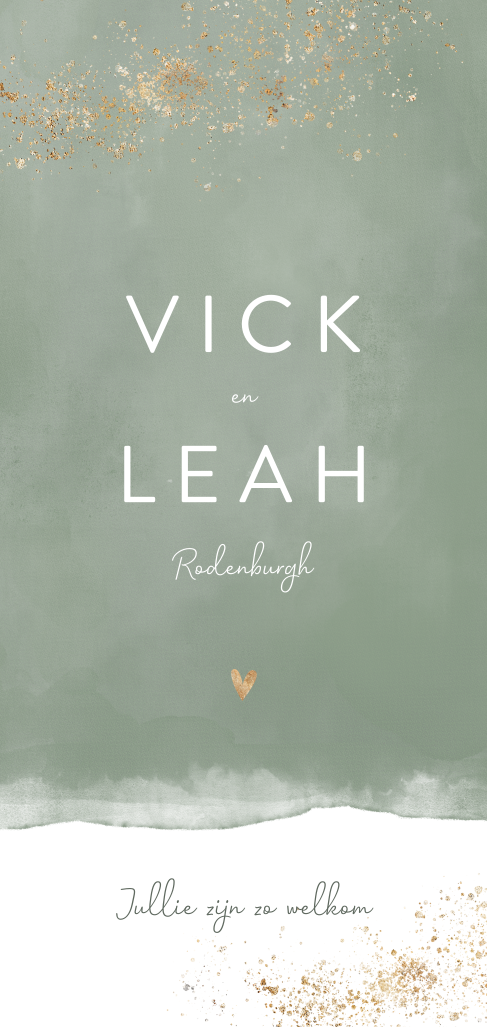 Stijlvol en trendy is een gouden combinatie. Dat zie je maar weer op dit mooie ontwerp met groene waterverf en goudkleurige spetters. Met strakke letters staan de namen van je pasgeboren tweeling voorop de kaart. Pas de lettertypes naar wens aan om de kaart nog persoonlijker te maken. Op de achterzijde is ruimte voor alle geboortegegevens en de overige informatie.