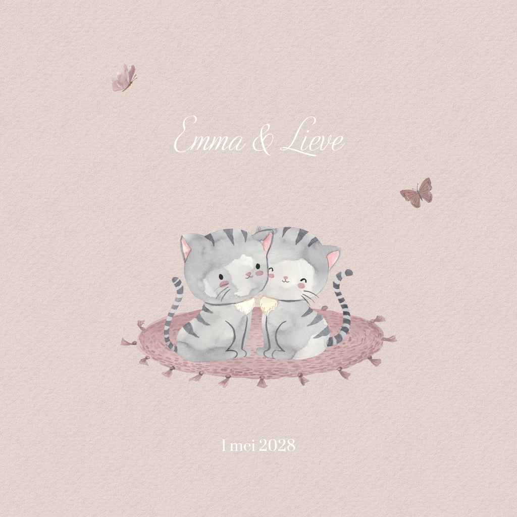Tweeling geboortekaartje meisjes met twee poesjes