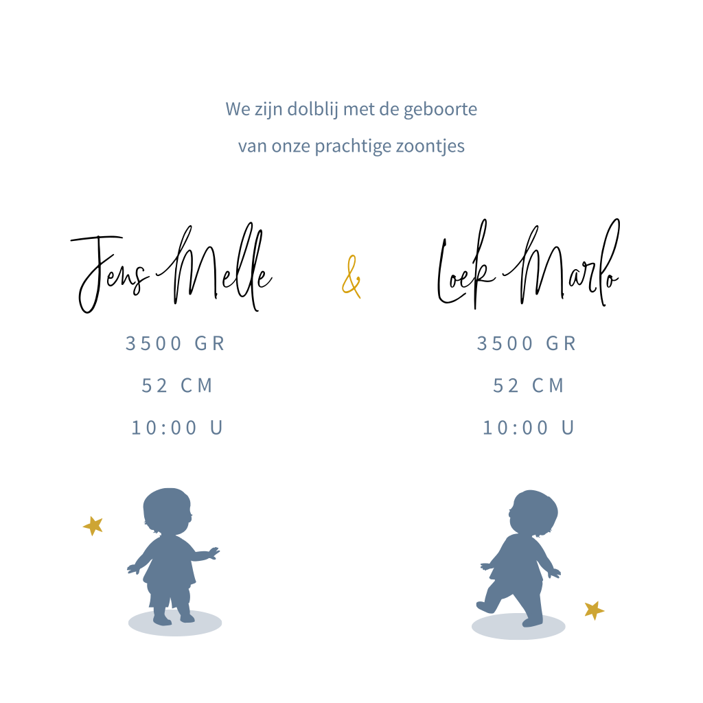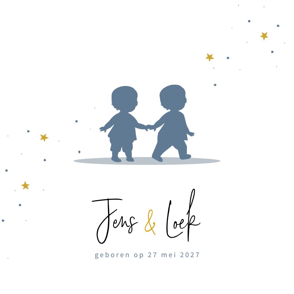 Tweeling geboortekaartje met silhouet jongens en sterretjes