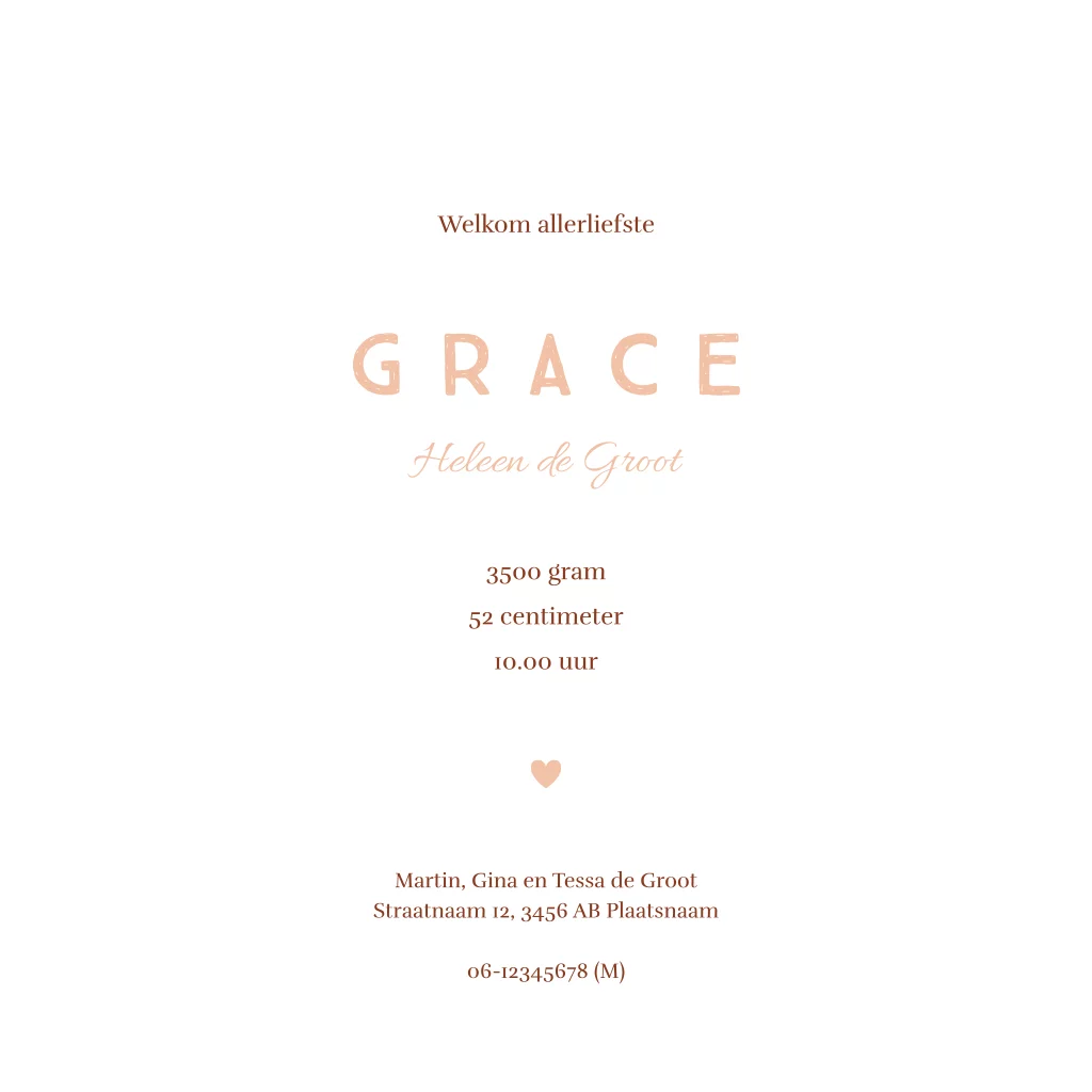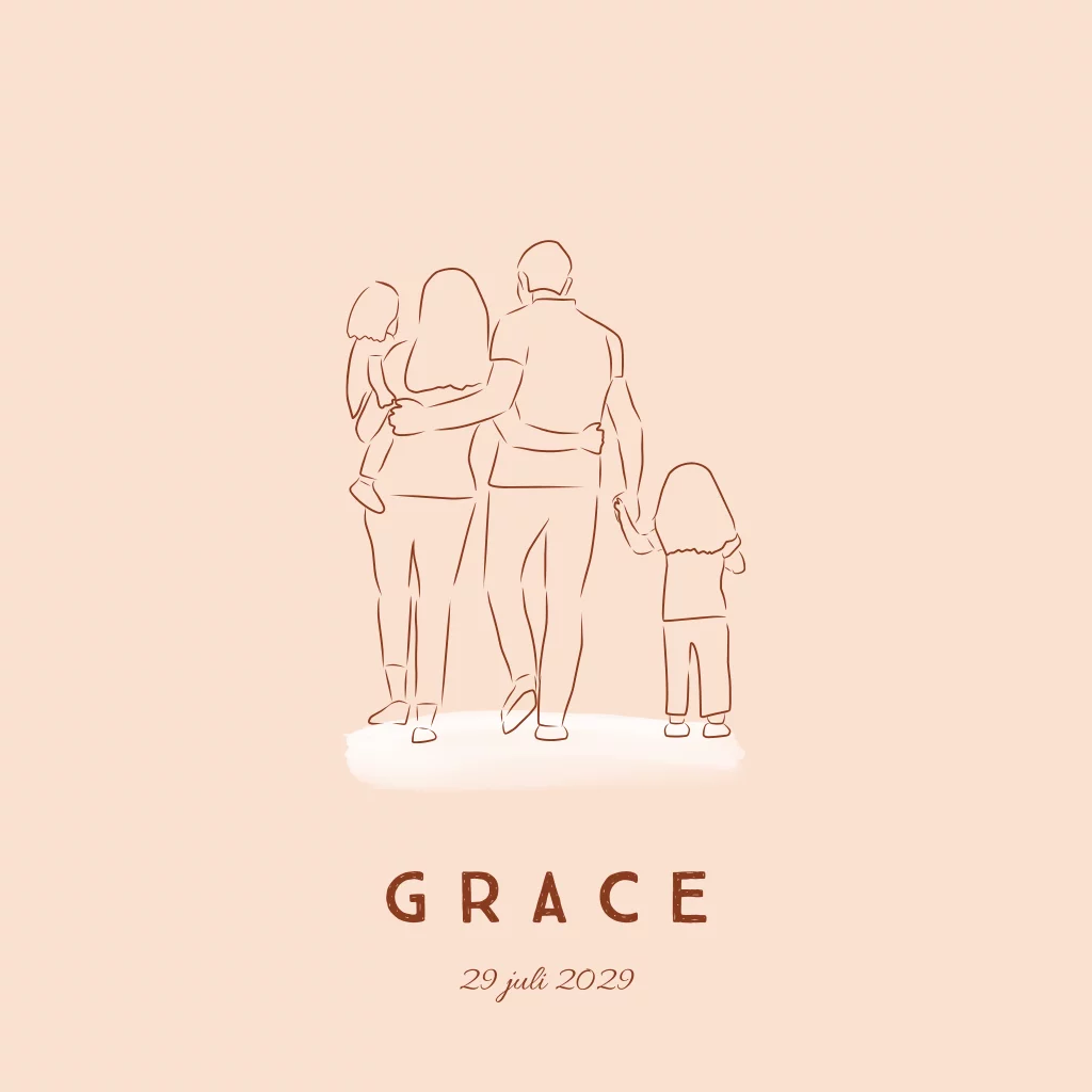 Is er weer een lief meisje op komst? Hoe leuk is deze toepasselijke lijntekening van papa, mama, grote zus en hun baby zusje. Je kunt de kleuren nog eenvoudig bewerken met de kaartenmaker en daarna een proef aanvragen om te zien hoe het uiteindelijk gedrukt gaat worden.