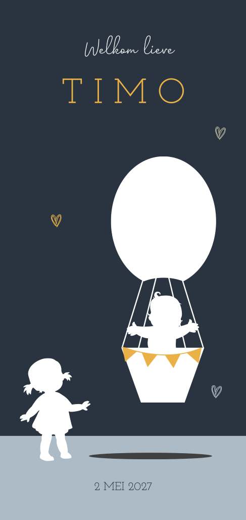 Silhouet geboortekaartje zusje luchtballon met jongen