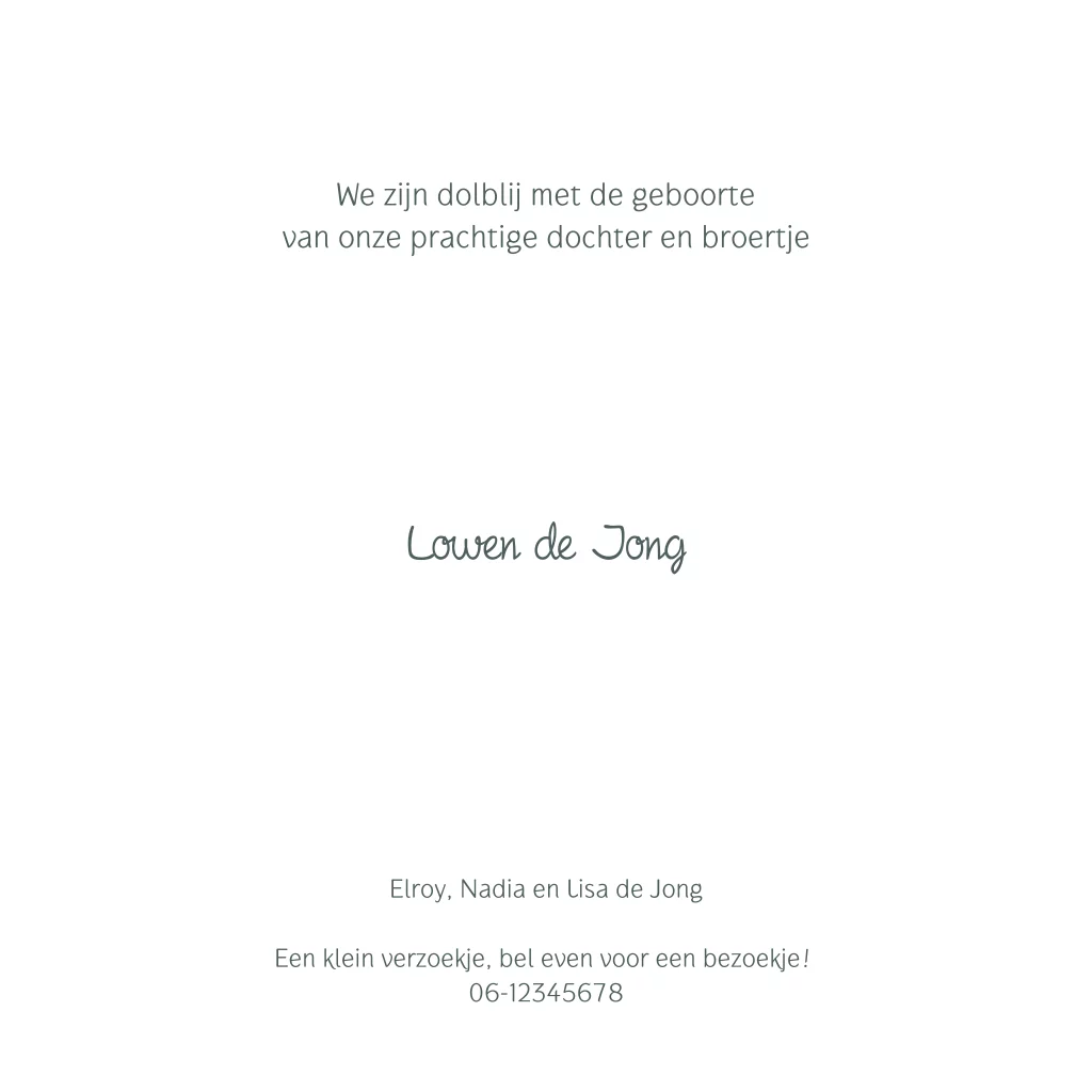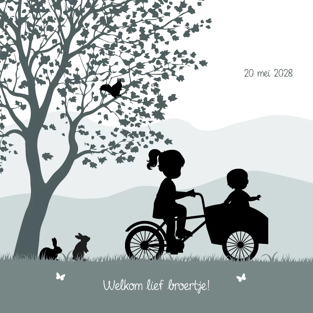 Tweede kindje geboortekaartje met silhouet grote zus op de bakfiets