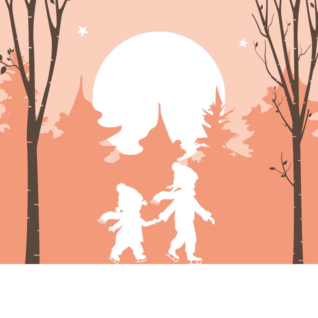 Winters geboortekaartje voor de komst van een 2e kindje met de grote zus en haar kleine zusje op schaatsen door het bos. Stijlvolle geboortekaart door de goudfolie. De illustratie van een pas geboren meisje op schaatsen in een winterse omgeving. De naam en sterretjes spatten van de kaart af doordat ze met goudfolie worden gedrukt. Pas de kaart aan door kleuren en lettertypes toe te voegen.