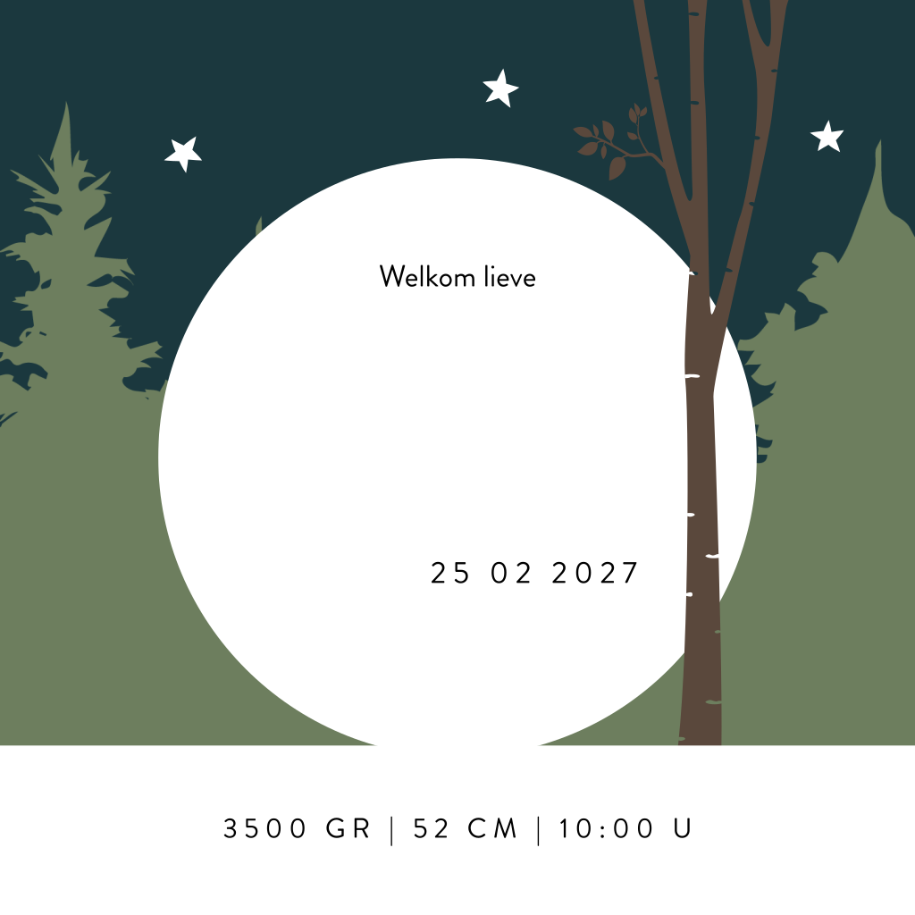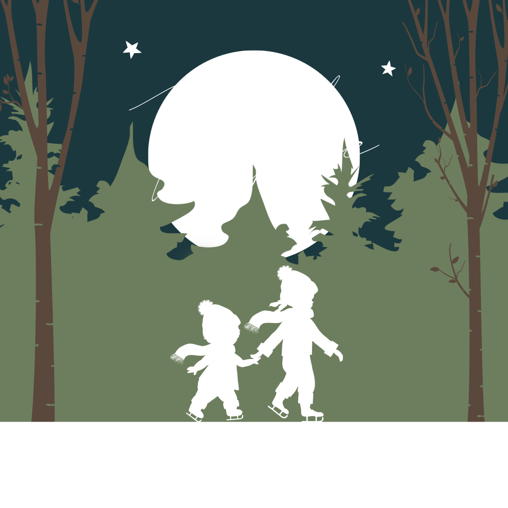 Winters geboortekaartje voor een 2e kindje met grote zus en haar kleine broertje op schaatsen door het bos. Een hele mooie geboortekaart in silhouet en extra stijlvol door de goudfolie. De illustratie van een pas geboren jongetje op schaatsen in winterwonderland. De naam en sterretjes spatten van de kaart af doordat ze met goudfolie worden gedrukt. Pas de kaart aan door kleuren en lettertypes toe te voegen.