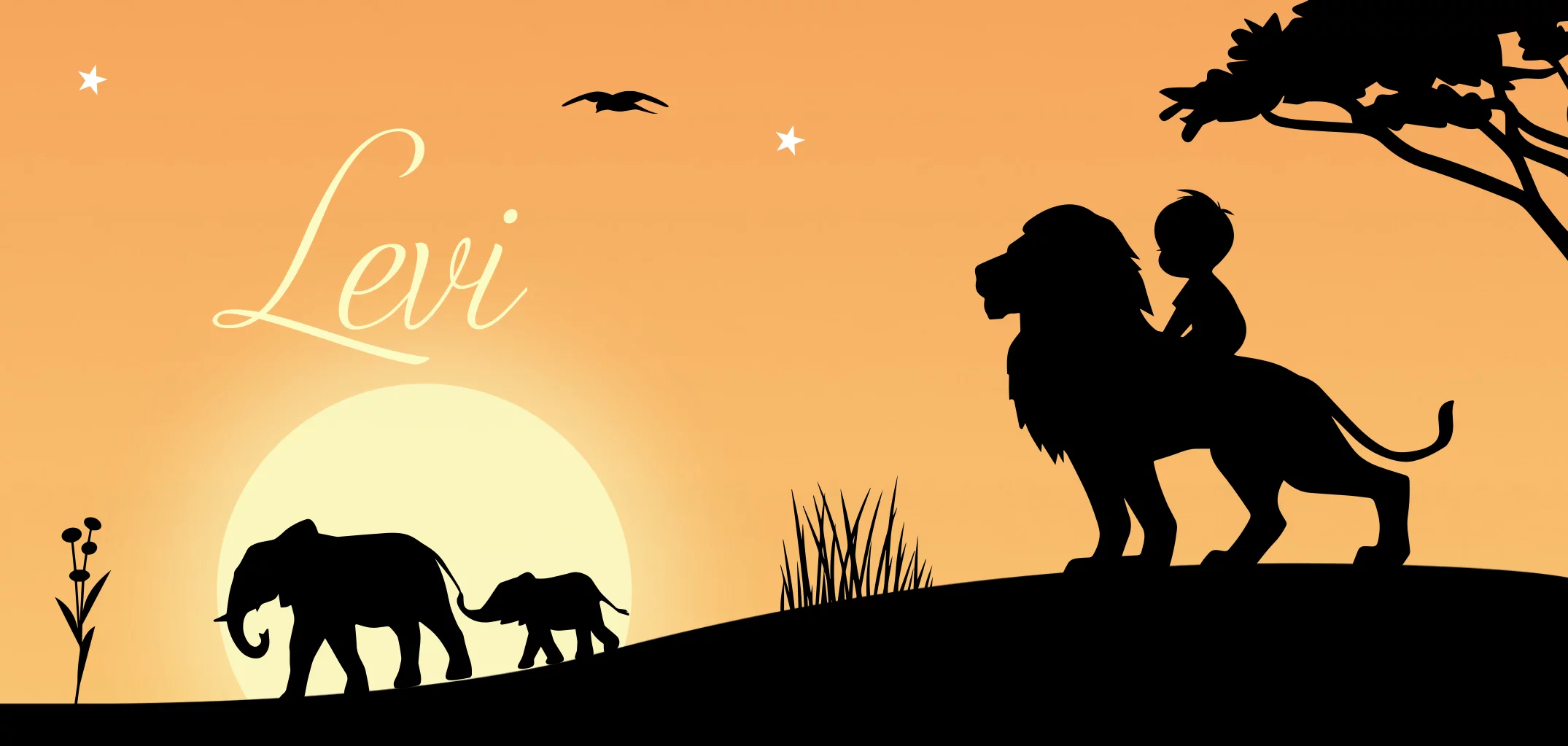 Is de Leeuwenkoning jouw favoriete musical? Dan is dit geboortekaartje voor de komst van een zoon echt iets voor jou! Op dit babykaartje zie je een jongen op een leeuw over een Afrikaanse vlakte uitkijken, waar ook een neushoorn, apen en olifanten zichtbaar zijn. De lucht verkleurt door de ondergaande zon.