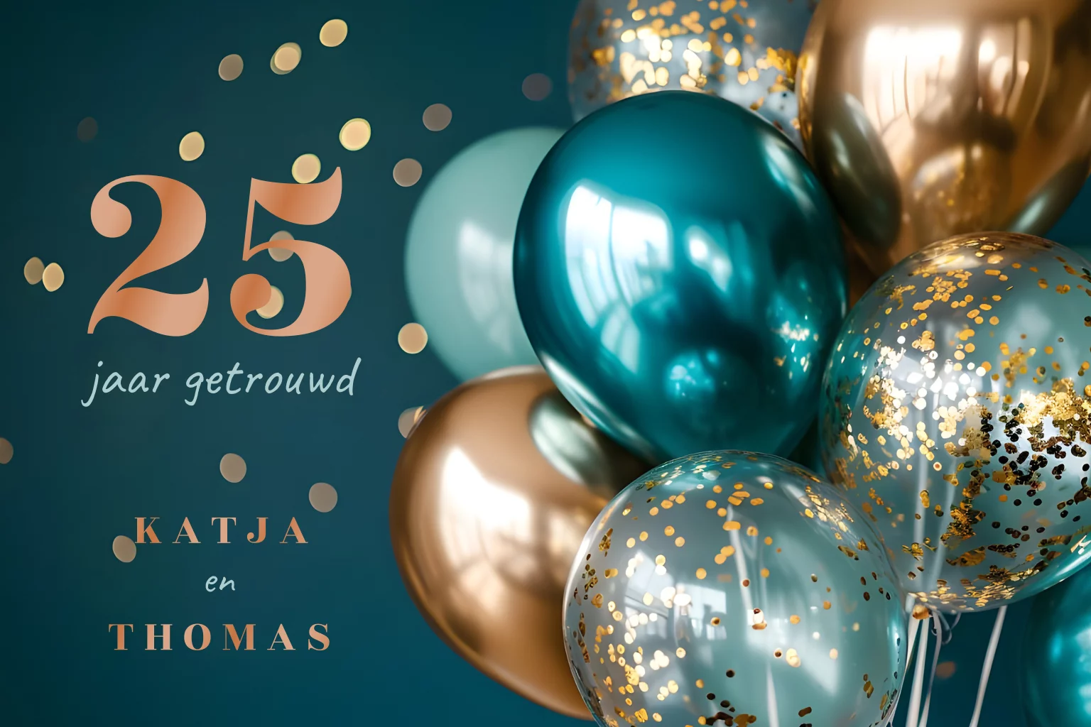 Jubileum uitnodiging 25 jaar getrouwd met ballonnen en hoogglans