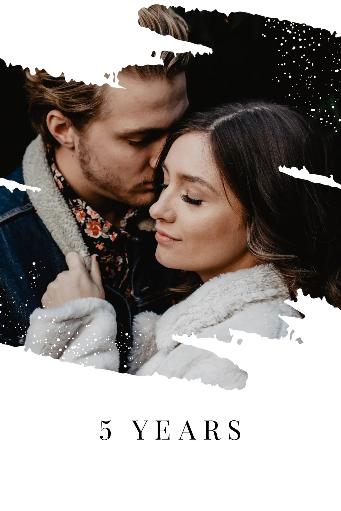 Nodig jullie vrienden en familie uit voor een gezellig diner of feestje ter ere van jullie vijfjarige jubileum! Deze stijlvolle uitnodiging biedt ruimte voor een prachtige foto van jullie samen, dit kan natuurlijk ook een mooie trouwfoto zijn. De koperfolie details maken dit kaartje tot een feestelijk geheel. Pas dit kaartje zelf aan in onze gebruiksvriendelijke editor.