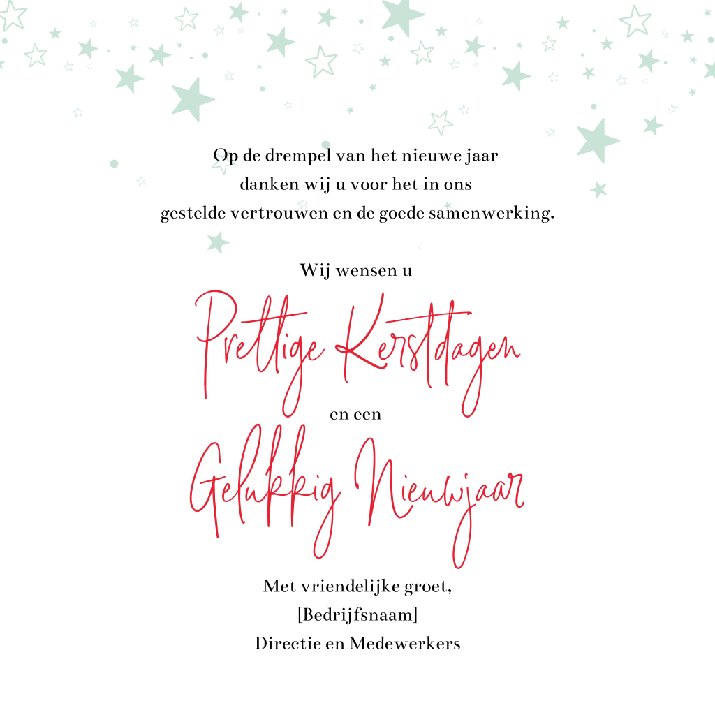 Kerstkaart met op de voorkant een Jack Russell-terriër, klaar om de feestdagen te vieren met een vrolijke kerstmuts op zijn guitige kopje. Mintgroene achtergrond, bezaaid met witte sterretjes, die de magische sfeer van Kerstmis vastleggen. Met onze designtool kun je deze kerstkaart verder aanpassen, met je eigen boodschap, kleuren en decoratieve elementen, om zo je persoonlijke kerstgroet te creëren.