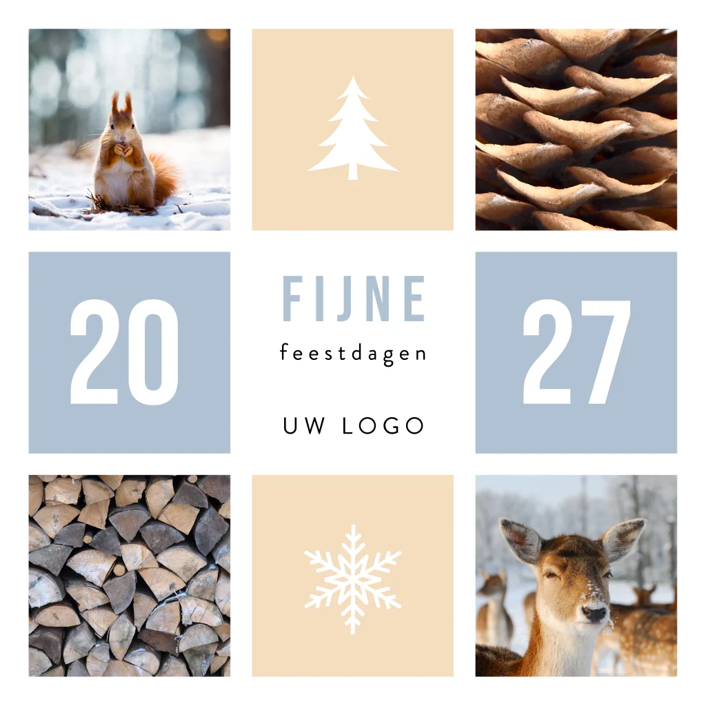 Ben jij ook zo gek op mooie natuurfoto's? Op deze stijlvolle kerstkaart komen de foto's helemaal tot hun recht. Maar misschien heb je zelf wel mooie foto's, via onze online ontwerptool kan je deze zelf uploaden. Perfect voor een extra persoonlijke kerstkaart.