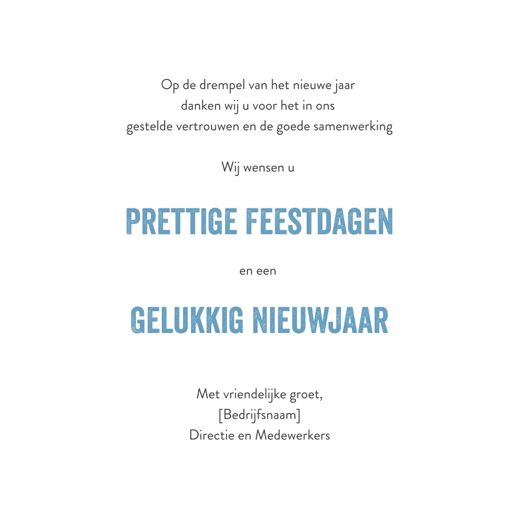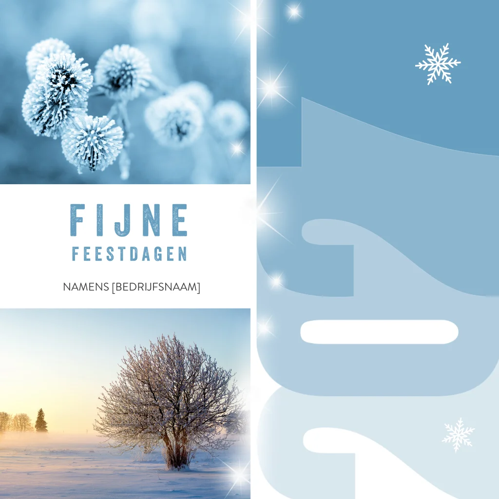 Op zoek naar een stijlvolle kerstkaart om te versturen naar je klanten en zakenrelaties? Dan is deze kaart wat voor jou, in deze kaart kan je eigen foto's uploaden om je kerstkaart nog persoonlijker te maken, daarnaast kan je ook de kleuren aanpassen. Een unieke kerstkaart is zo gemaakt in onze handige online ontwerptool.