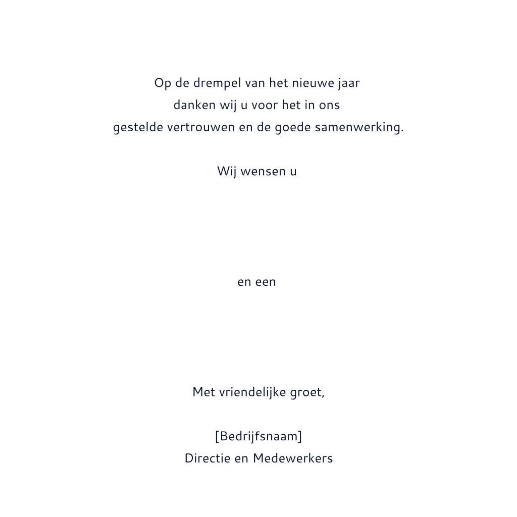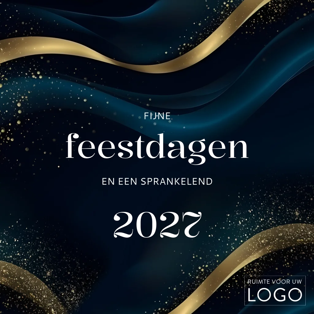 Stuur uw relaties een stijlvolle en luxe zakelijke kerstkaart met diepblauwe achtergrond en gouden accenten. Deze mooie kerstkaart voor bedrijven is perfect om klanten en medewerkers fijne feestdagen en een succesvol nieuwjaar 2027 te wensen. Ruimte voor uw eigen logo maakt de kaart extra persoonlijk en professioneel.