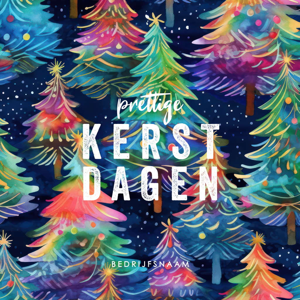 Verspreid vreugde met onze feestelijke kerstkaart, versierd met kerstbomen in een regenboog aan kleuren. 'Prettige kerstdagen' staat in glinsterende goudfolie. Gebruik de gebruiksvriendelijke editor om de kaart naar uw smaak aan te passen en uw eigen unieke touch toe te voegen.