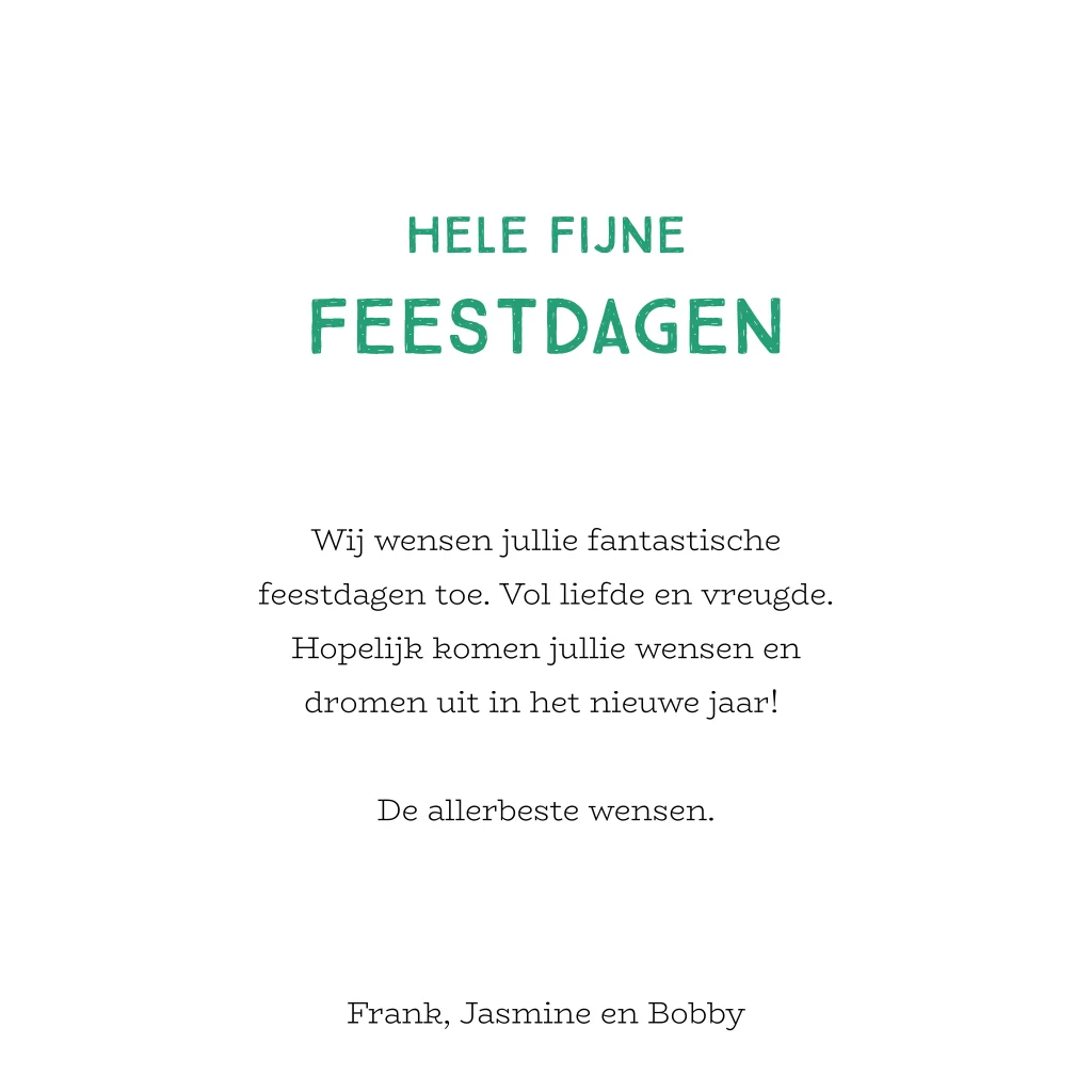 Humoristische kerstkaart met een T-rex in kerstsfeer, compleet met lichtsnoer en kerstbal. De tekst “Christmas Tree Rex” maakt het ontwerp extra leuk voor jong en oud. Personaliseer de kaart eenvoudig in de editor en stuur een speelse kerstgroet met een knipoog.