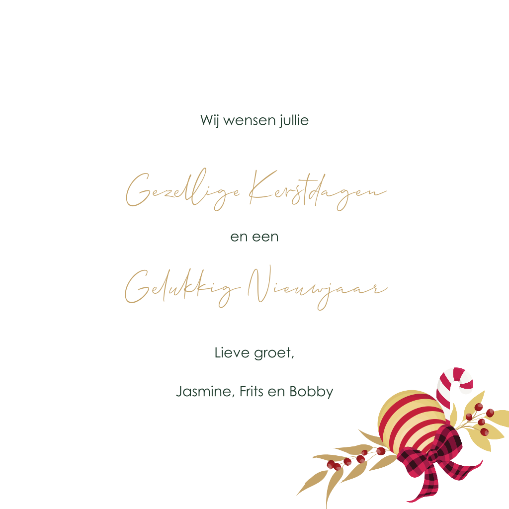 Hippe, donkergroene kerstkaart met in het midden ruimte voor een mooie, eigen foto. Rond de foto allemaal leuke kerst tekeningetjes als gekleurde kerstballen, groene takken en bladeren, sterren en nog veel meer. Stuur deze kaart naar familie en vrienden en wens ze een mooie kerst toe!