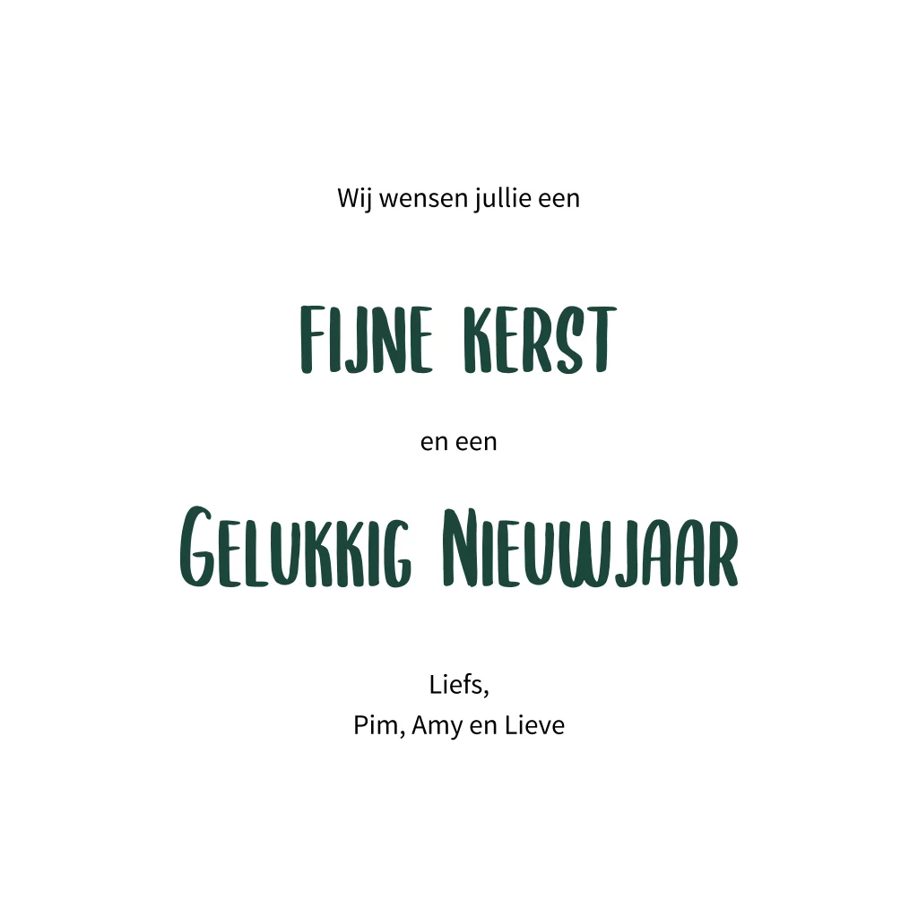Groene kerstkaart met goudkleurige kerstbal en sterren. Een feestelijk en stijlvol ontwerp om al je vrienden en familie een fijne kerst en een gelukkig nieuwjaar mee toe te wensen. Pas de tekst aan de binnenzijde zelf eenvoudig aan in onze ontwerptool.
