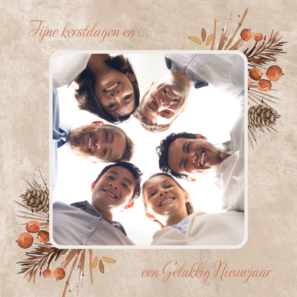 Ontwerp de perfecte kerstgroet met onze prachtige beige kerstkaart, verfraaid met subtiele kersttakken die feestelijk versierd zijn met glinsterende besjes. In het hart van de kaart bevindt zich een elegant fotoframe, klaar om gevuld te worden met jouw meest dierbare herinneringen aan het afgelopen jaar. Met behulp van onze intuïtieve designtool kun je moeiteloos de kerstkaart aanpassen naar jouw wensen, waardoor je een unieke boodschap kunt creëren die de warmte en vreugde van het seizoen weerspiegelt. Laat je creativiteit de vrije loop en deel deze speciale kerstwens met je geliefden.