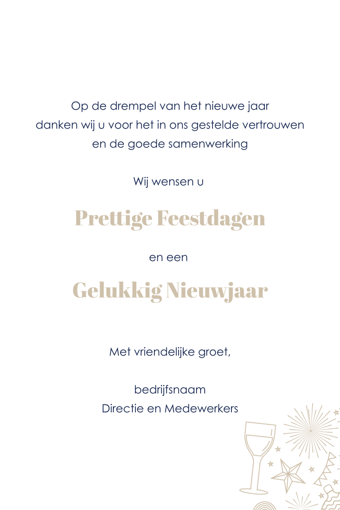 Staande kerstkaart in een diepe donkerblauwe kleur, verfraaid met een bovenste strook vol feestelijke kerst icoontjes en de hartelijke boodschap 'Merry Christmas'. Op de voorzijde is er voldoende ruimte om uw bedrijfslogo en een prachtige persoonlijke foto toe te voegen. Geef de kaart een persoonlijk tintje met onze gebruiksvriendelijke designtool en bekijk een voorproefje van het resultaat door een drukproef te bestellen.