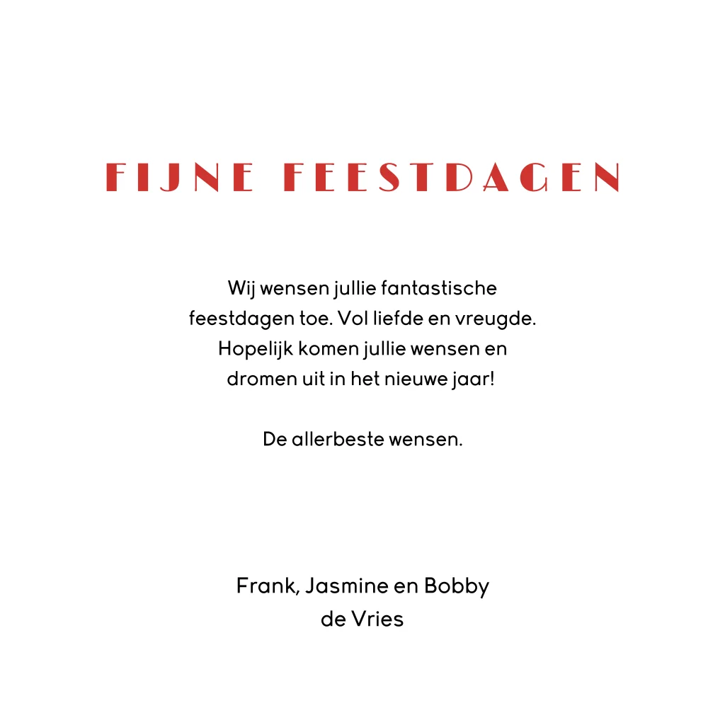 Trendy kerstkaart met een opvallend rood-roze gestreept ontwerp, geïnspireerd op het klassieke candy cane. De strakke typografie en ruimte voor een persoonlijke foto maken deze kaart eigentijds én feestelijk. Perfect voor wie houdt van een moderne kerstkaart. Plaatseenvoudig je eigen de foto en tekst in onze online editor.