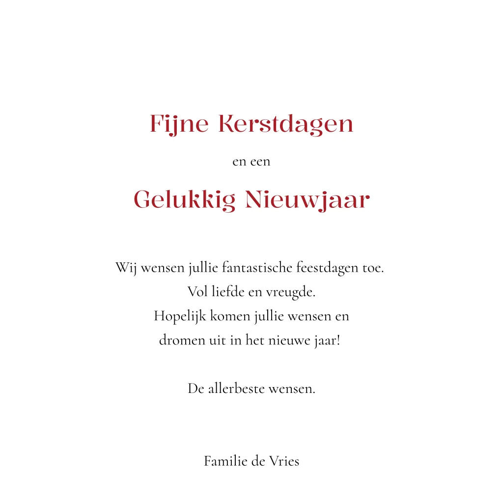 Stijlvolle kerstkaart met rode kerstbal en eigen foto
