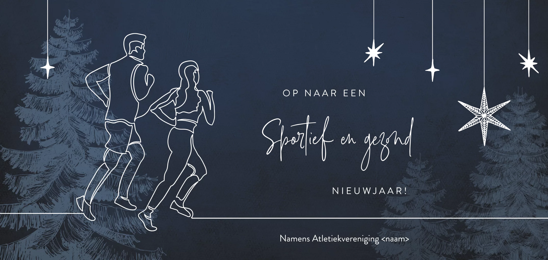 Donkerblauwe kerstkaart oneline hardlopers en goudfolie