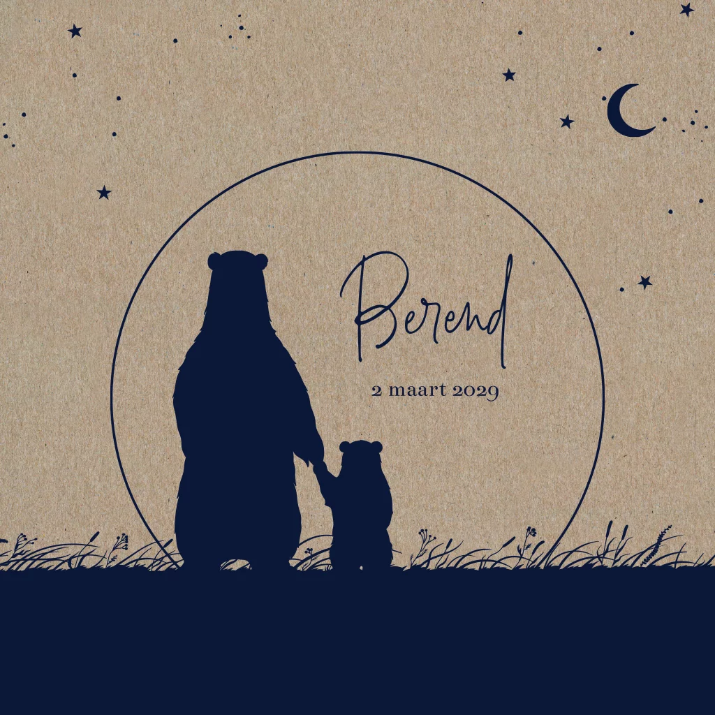 Kraft geboortekaartje jongen met silhouet beertjes en maan