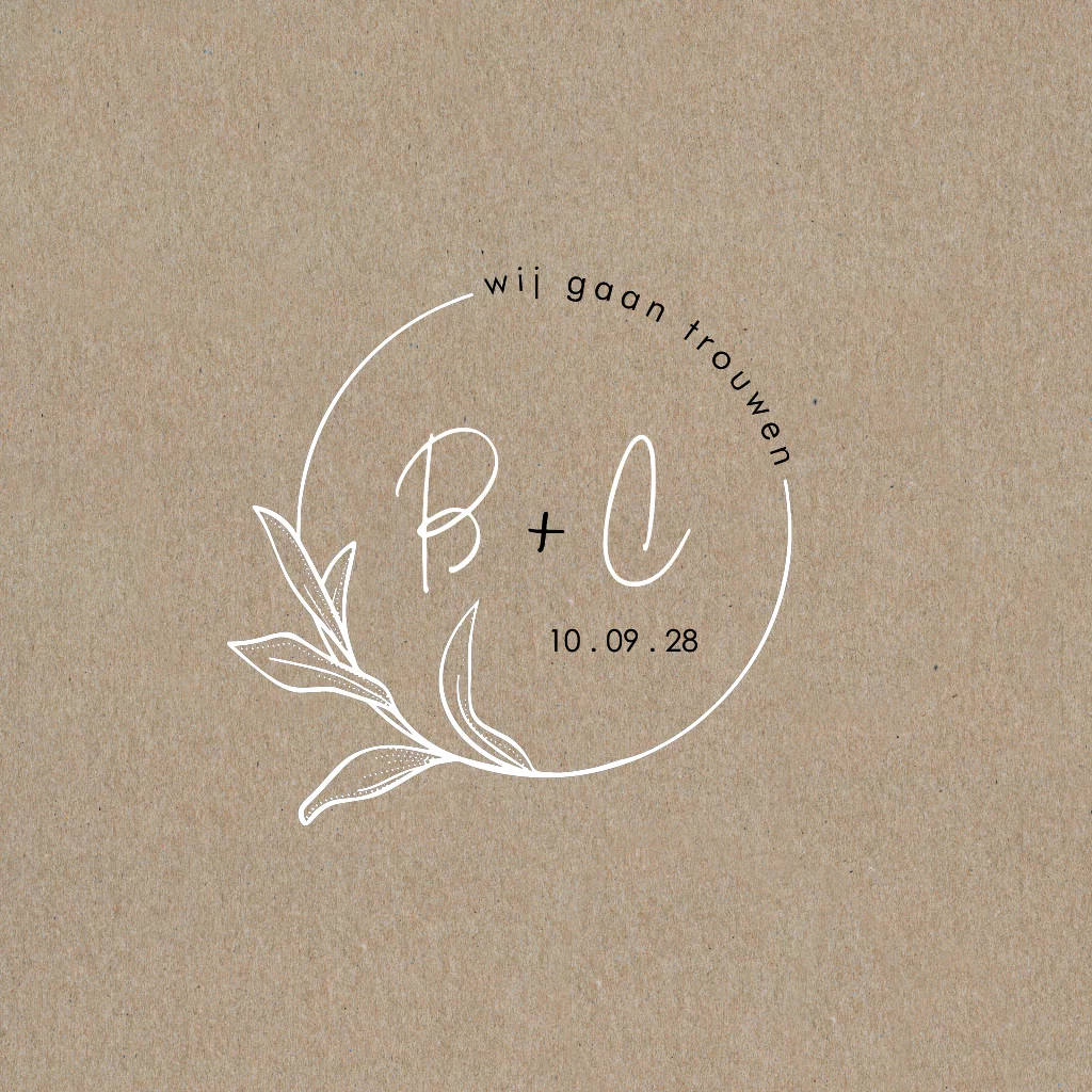 Kraft trouwkaart met minimalistisch trouwlogo in zwartwit