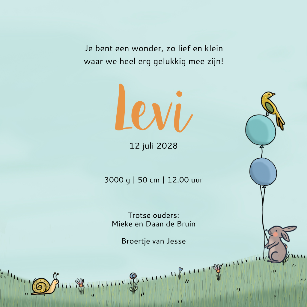 Geboortekaartje grote broer met baby broertje bij boomhut
