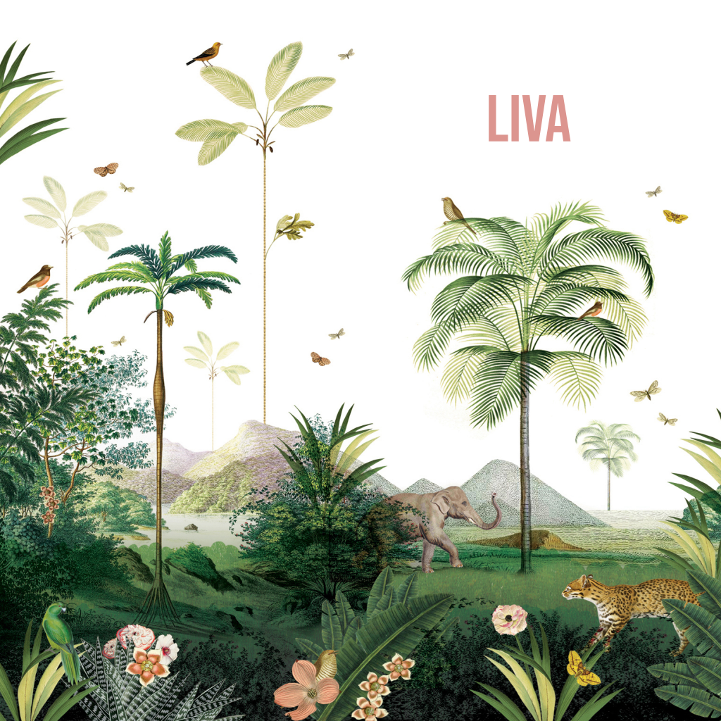 Geboortekaartje palmentuin met luipaard en olifant in de jungle