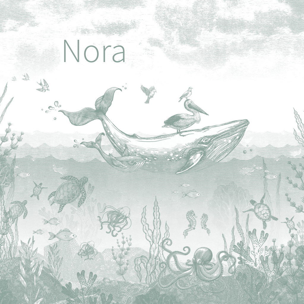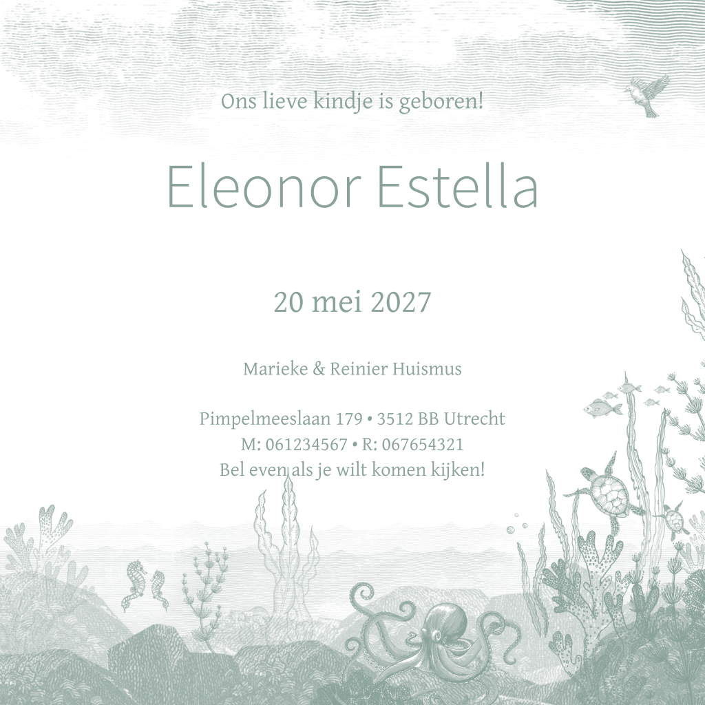 Klassieke Toile de Jouy stijl in een nieuw jasje! Het geboortekaartje geeft een kijkje onder en op het water. Verkrijgbaar in 8 prachtige kleuren.