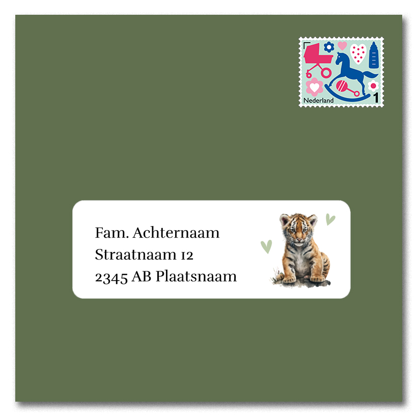 Hoe mooi passen deze adresstickers bij dit geboortekaartje? Je kunt het ontwerp moeiteloos aanpassen met de editor en zelf heel eenvoudig alle adressen op de adresstickers plaatsen.