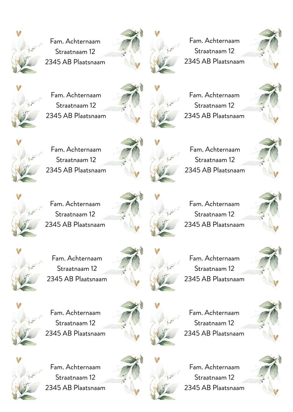 Hoe mooi passen deze adresstickers bij deze trouwkaart? Je kunt het ontwerp moeiteloos aanpassen met de editor en zelf heel eenvoudig alle adressen op de adresstickers plaatsen.
