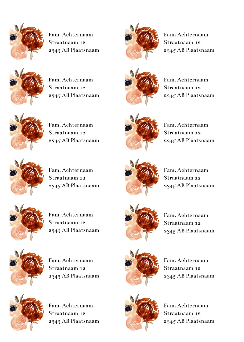Hoe mooi passen deze adresstickers bij deze trouwkaart? Je kunt het ontwerp moeiteloos aanpassen met de editor en zelf heel eenvoudig alle adressen op de adresstickers plaatsen.
