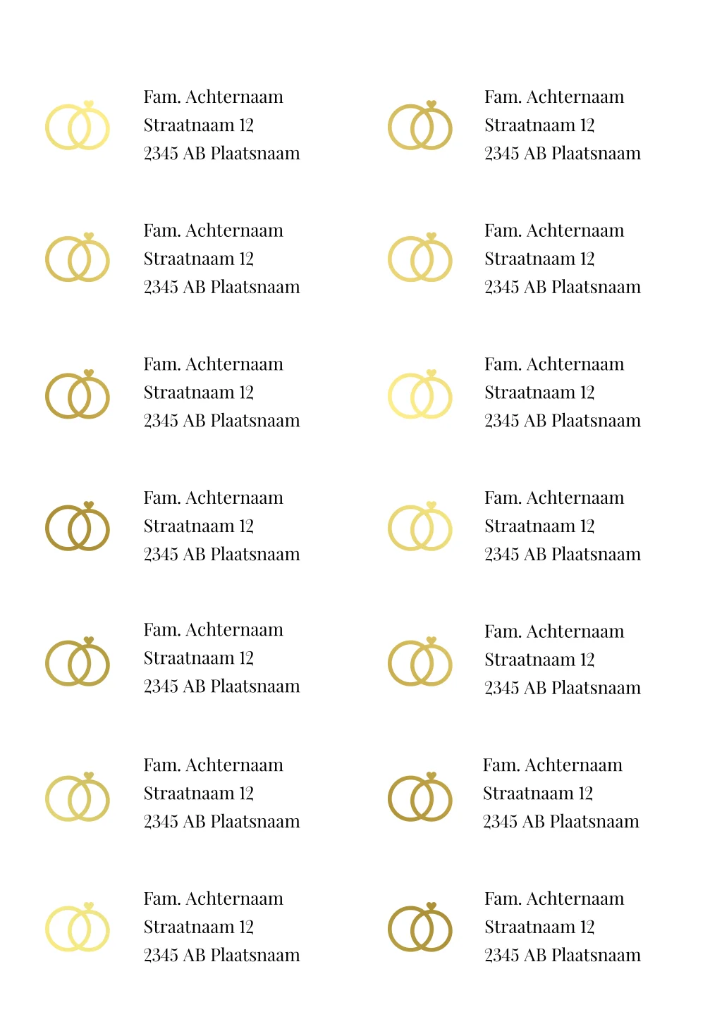 Hoe mooi passen deze adresstickers bij deze trouwkaart? Je kunt het ontwerp eenvoudig met de editor aanpassen en de adressen plaatsen.