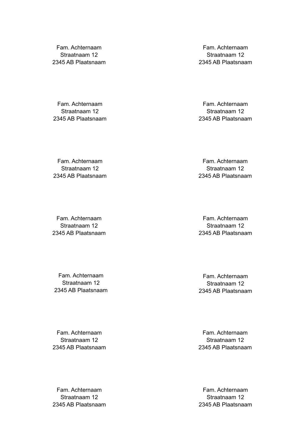 Houd er, in verband met de snijmarge, rekening mee dat je de adresgegevens niet te dicht tegen de rand zet.