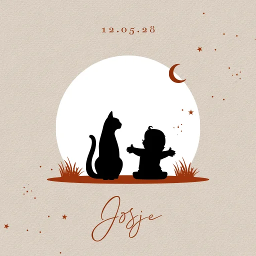 Beige canvas poster met silhouet kindje en poes